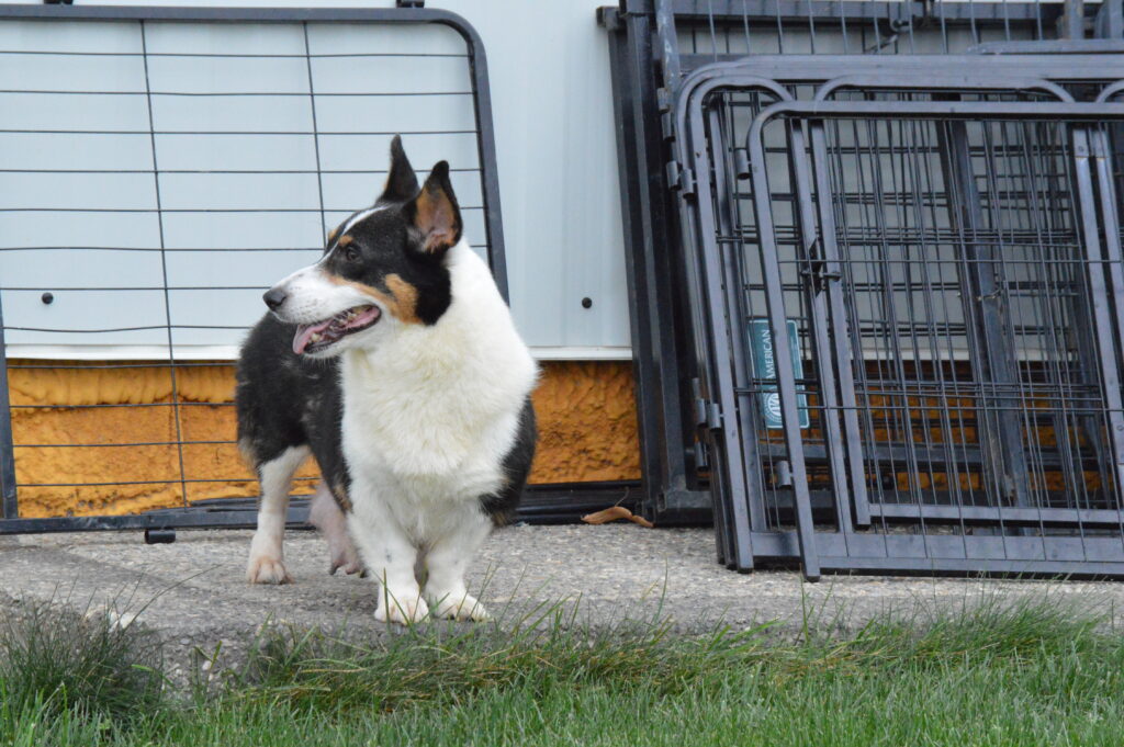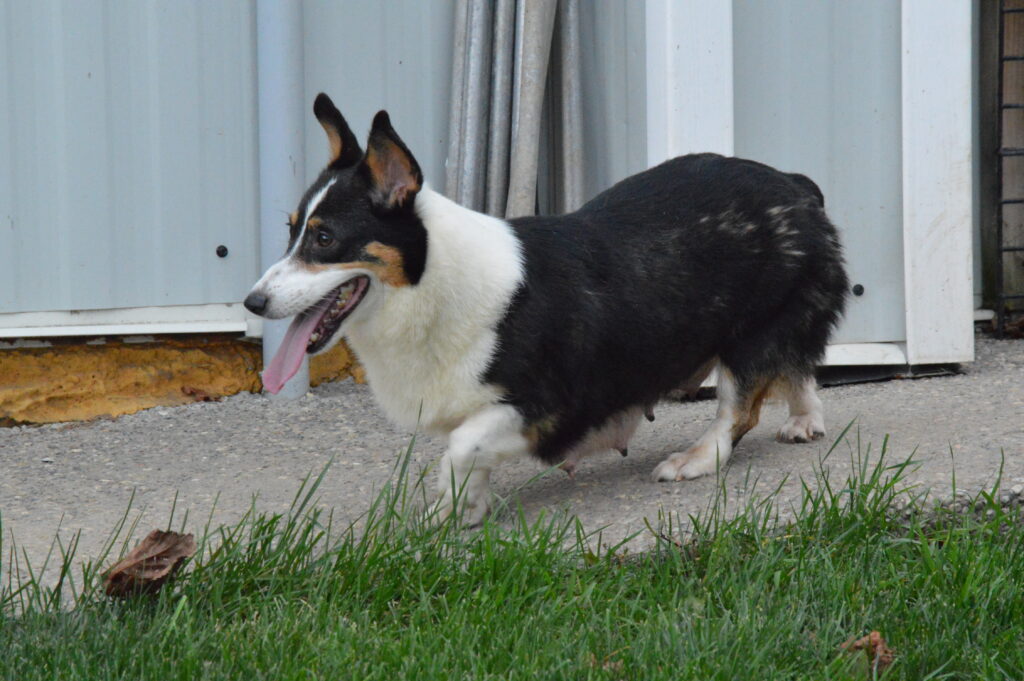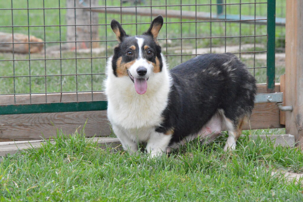 Her classic black, white, and tan coat gives her a timeless cottage-style beauty, while her friendly temperament makes her a perfect companion for both families and individuals. She enjoys exploring the yard, greeting visitors with cheerful energy, and curling up for cozy naps after playtime.